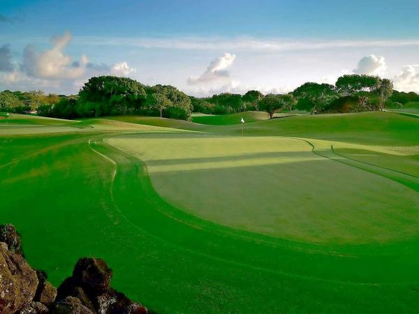 Four Seasons Golf Club Mauritius at Anahita (Par 72/Slope 130, Blau 5828 Meter, Rot 4545 Meter): Der Golfplatz in Anahita an der Ostküste ist der jüngste Platz der Insel und wurde entworfen von der südafrikanischen Golflegende Ernie Els. Der immer noch aktive, mehrfache Major-Sieger trägt den Spitznamen „The Big Easy“ und genauso wirkt der Kurs auf den ersten Blick. Sehr weite Fairways erlauben vom Tee aus fast immer den Griff zum Driver. Selbst ein mäßiger Schlag ist anschließend in der Regel gut spielbar. Nicht umsonst trägt Loch vier (Par 5, 483 Meter) den Namen Ocean Drive. Hinter dem etwas erhöht liegenden Grün wartet nur noch Meerwasser. Dass sich dieser Platz jedoch keinesfalls einfach ergibt, dafür sorgen die höllisch schnellen, manchmal schmalen und stark ondulierten Grüns. Wer den Backspin nicht in seinem Repertoire hat, wird nur wenige „Greens in Regulation“ treffen. Fast immer ist ein zusätzlicher kurzer Chip nötig, um den Ball aufs Grün zu bringen.
