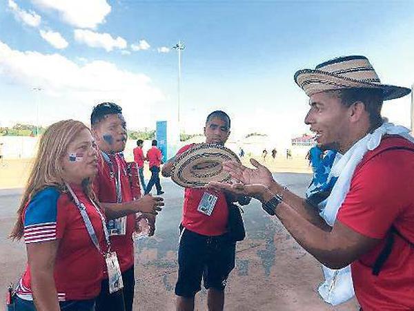 Im Medienzentrum betritt Jesus Santizo die Bühne. Er ist Moderator und eine Kultfigur im panamaischen Fernsehen. Bei dieser Weltmeisterschaft trägt er einen Anzug, der in der Flagge Panamas gehalten ist. Dazu Goldkette, Goldringe, weiße Krawatte. „Mein Chef sagte, dieses Outfit ist eine gute Idee für die erste WM. Und was soll ich sagen? Ich liebe den Anzug.“ Dann eilt er mit seinem Team durch den Pressebereich, die ausländischen Kollegen staunen.