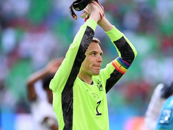 Berichten zufolge kniet die deutsche Mannschaft gemeinsam mit der Englischen im Zuge der Black Lives Matter-Bewegung nieder. Deren Kapitän Harry Kane wird im Gegenzug eine Regenbogenbinde tragen, wie Manuel Neuer.