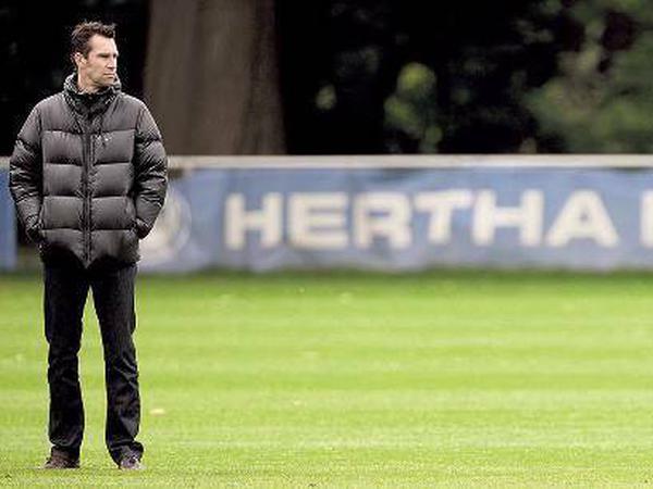 Der Manager von Hertha BSC starrt während solcher Aussagen immer wieder nach unten, auf seine Hände, mit denen er Allgemeinplätze zu kneten scheint. Dahinter verschanzt der Mann seine Emotionen. Denn es geht um eine Menge für ihn: Wird zum zweiten Mal in drei Jahren eine von ihm zusammengestellte Mannschaft absteigen? Wie wird es danach für ihn in Berlin weitergehen?