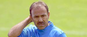 Herthas Trainer Jos Luhukay simuliert im Training, was seine Mannschaft in Leverkusen erwarten wird. Am Samstag gastiert Berlins Bundesligist bei Bayer, der Mannschaft der Stunde.