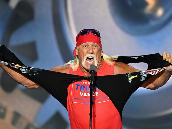 Hogan begleitete Trump bei mehreren Wahlkampfauftritten – auch beim Parteitag der Republikaner im vergangenen Sommer in Milwaukee im Bundesstaat Wisconsin. Unter dem Jubel der Menge zog er auf der Bühne zunächst sein Jackett aus und riss sich dann ein schwarzes T-Shirt mit US-Flaggen-Aufdruck vom Leib.
