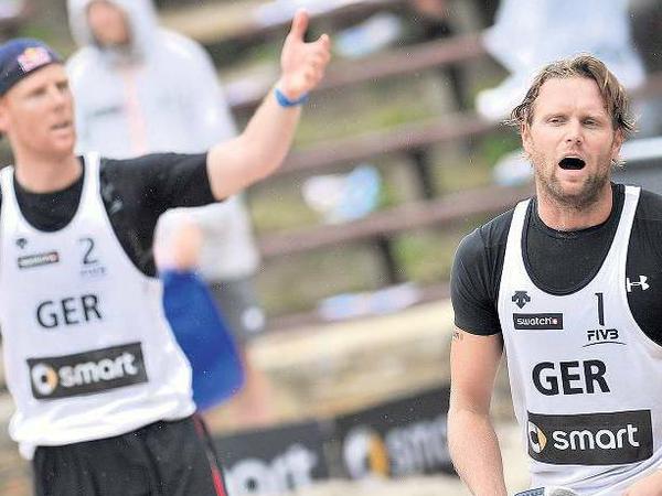 Das Regenwasser lief Jonas Reckermann und Julius Brink in Strömen von den nassen Körpern. Gerade hatte das beste deutsche Beachvolleyball-Duo sein Achtelfinale beim Grand Slam in der Berliner Waldbühne verloren. Nun standen die Spieler bedröppelt da und suchten mit leeren Blicken nach Antworten auf lästige Fragen. „Wir haben ein Spiel verloren. Das ist enttäuschend. Das hat aber nichts mit Olympia zu tun“, sagte Brink und klang dabei wie ein Prediger. Partner Reckermann versuchte der Niederlage der Europameister aus Berlin am Freitag gegen die deutschen Kollegen Klemperer/Koreng immerhin noch eine gute Seite abzugewinnen. „Das war sicher keine berauschende Leistung von uns, aber das Positive ist, dass wir nun einige Tage mehr Training haben, bevor wir nach Klagenfurt fahren.“