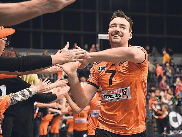 Doch die Volleyballer tauschen nicht nur deshalb so viele High Fives aus, weil sie sich gar nicht aus dem Weg gehen können. „Das Abklatschen bringt uns enger zusammen“, sagt Kyle Ensing. Berlins Diagonalangreifer aus den USA klatscht sich seit frühester Kindheit mit seinen Mitspielern ab. Für ihn gehört es so sehr dazu, dass er auch High Fives mit unsichtbaren Mitspielern einstreut. Im Spiel gegen Frankfurt brachte er sich in einer Szene in Stellung für den nächsten Aufschlag der Gegner und streckte noch einmal für ein paar Abklatscher den Arm aus. Weil in dem Moment aber niemand in seiner Nähe war, schlug er trotzdem einfach in die Luft – ohne direkten Empfänger. Doch es störte ihn kein bisschen. „Das High Five ist einfach ein cooler Teil des Sports“, betont Ensing.