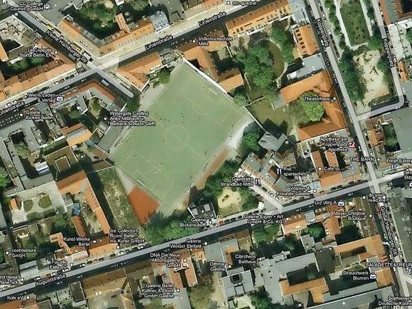 Im Kernbezirk Mitte gibt es überhaupt nur einen einzigen Sportplatz, was angesichts der hohen Grundstückswerte auch nicht verwundert. Mitten in Wohnhäuser eingebettet zwischen Linien- und Auguststraße liegt der Kunstrasenplatz des BW Berolina Mitte. Die Fenster und Balkons hängen hier zum Teil nur wenige Meter von der Seitenlinie entfernt, doch Beschwerden gibt es dem 1. Vorsitzenden, Thomas Meyer, zufolge kaum. „Eine Anwohnerin hatte mal die Polizei gerufen, doch das ist jetzt schon einige Jahre her“. Meyer weiß sogar von mehreren Anwohnern, dass sie froh sind, den Fußballplatz direkt vor dem Fenster zu haben, schließlich gäbe die freie Fläche viel Licht und sei weniger störend als z.B. eine Straße. Mehr Sorgen hatte der Klub davor, dass der Bezirk sich irgendwann dazu entscheiden könnte, die attraktive Fläche zu veräußern. Vor zehn Jahren hatte man gegen eine mögliche Bebauung demonstriert, inzwischen ist die Sportstätte aber offiziell im Flächennutzungsplan des Bezirks festgeschrieben, auch weil es eben keine angemessene Ausweichstätte in Mitte gibt. „Mittlerweile fühlen wir uns hier sicher und haben einen enormen Mitglieder-Zuwachs. Ich glaube nicht, dass sich da irgendeine Partei an eine Bebauung rantrauen würde.“ zeigt sich Meyer zuversichtlich.