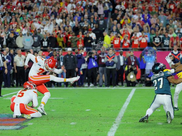 Trotz der großen Eagles-Führung zur Pause blieb die Partie spannend - denn die Chiefs kamen mit ganz neuem Schwung aus der Kabine. Die drei ersten Angriffs-Serien nach Rihannas Show endeten alle mit einem Touchdown für das in weiß spielende Team - die Eagles hatten zu diesem Zeitpunkt lediglich ein weiteres Field Goal erzielt und lagen plötzlich 27:35 in Rückstand. Nach dem erneuten Ausgleich und dem dritten Touchdown-Lauf von Hurts sorgte Harrison Butker mit einem verwandelten Field Goal für die Entscheidung. (dpa)