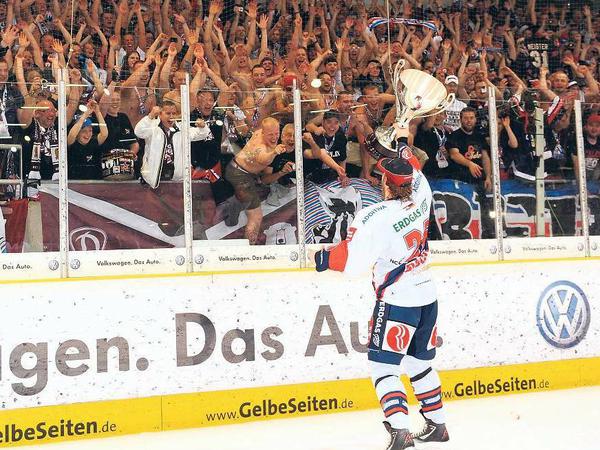 Man musste ihn fast schon in den Mittelpunkt zwingen. Die Feierlichkeiten waren nach dem Gewinn der Meistertrophäe in vollem Gange, doch Eishockeytrainer Don Jackson genoss sie lieber abseits vom großen Trubel. Ein bisschen genießend und ein bisschen gedankenverloren schlenderte er am Dienstagabend für sich allein durch die Gänge der Eishalle. Solange, bis er sich einfach nicht mehr dagegen wehren konnte. „Wir wollen den Trainer sehen“, schmetterte der Fanchor der Berliner, und so tapste der stoische Jackson, an dessen Gesichtsausdruck man nur selten den Ausgang eines Spiels ablesen kann, der stets auf Sachlichkeit und Contenance bedacht ist, vor die jubelnde Menge und machte die Welle.