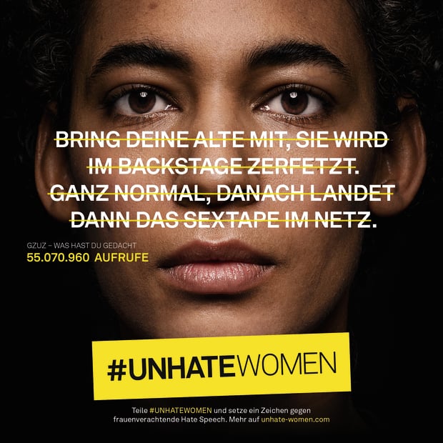 Sein größter Wurf bisher gelang mit einer Kampagne, die er ohne Honorar für Terre des Femmes geschossen hat. #unhatewomen zeigt der Gewalt gegen Frauen in unserer Gesellschaft klare Kante. Indem sie Sängerinnen und Schaupielerinnen die verachtenden Texte deutscher Rapsongs zitieren lässt. Ein Schlag in die Magengrube.