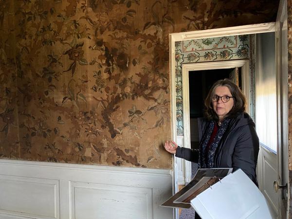 Dabei gab es eine Überraschung. „Wir vermuteten, die Tapeten seien aus asiatischer Produktion“, erzählt Ute Joksch. „Aber als wir die Leisten abgenommen haben, fanden wir darunter am Rand Namen von Schweizer Druckern. Es gab in der Schweiz damalsum die 10.000 Indienne-Drucker. Dass unsere Wandbespannung nicht aus Asien importiert war, ist eine echte Entdeckung.“