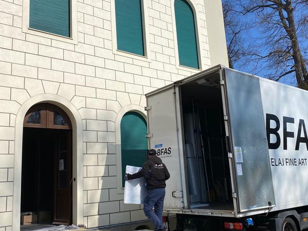 „Wir wussten ja gar nicht, welche Schäden wir hinter der Verschalung finden würden“, sagt Ayhan Ayrilmaz, Direktor der Abteilung Architektur der Stiftung Preußische Schlösser und Gärten, bei einem Rundgang einige Wochen vor der Eröffnung, während die ersten der ausgelagerten Bilder wieder ins Haus getragen werden. Die gesamte Innenausstattung, über 200 Objekte, war während der Sanierung in Depots gelagert worden und kehrt in diesen Wochen Stück für Stück zurück.