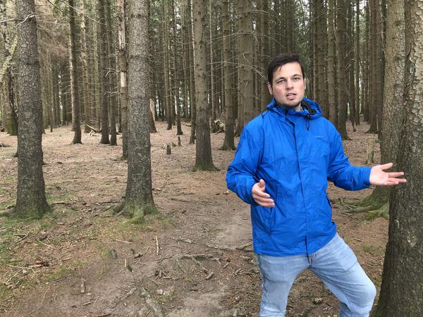 Der Wind ist kräftiger geworden, die Baumkronen schwingen und knarzen bedenklich. Hendrik Buch schaut nach oben, mahnt weiterzugehen. Er möchte diesen Waldabschnitt schnell verlassen.