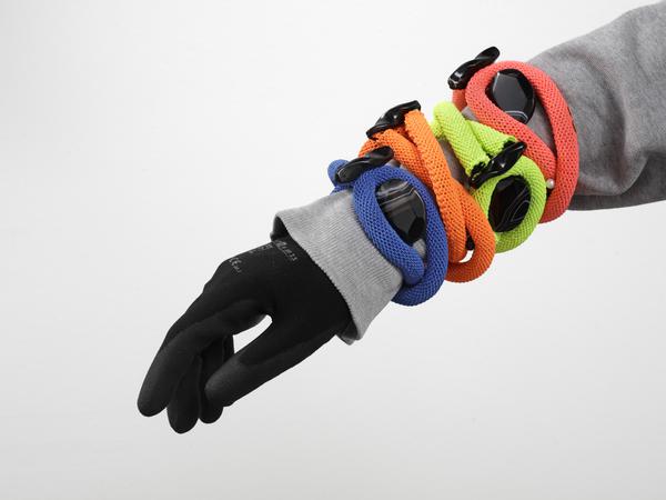 Diesen Zwiespalt fängt Ekaterina Pronina mit ihren von Techno-Partys inspirierten Armbändchen ein. Sie sind ein Symbol für den Reiz des Dazugehörens in angesehenen Clubs wie dem Berghain und zeigen gleichzeitig Barrieren auf, die andere auf Abstand halten. Die typisch für die Club- und Rave-Kultur in auffälligen (Neon-) Farben gehalten Armbänder werden als Mini-Kollektion betrachtet, die das gesamte Galeriepersonal miteinander verbindet und auf ein „Eintrittsband“ verweist, das man beim Betreten eines Clubs erhält.
