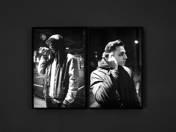 Der Versuch, Zutritt zu einer Gemeinschaft gewährt zu bekommen, verkörpert sich auch in Alona Rodehs Kunst: In Leuchtkästen flackern hinter einem Rastergitter die inszenierten Porträts zweier Jugendlicher, die einen kryptischen Dialog in Morsesignalen führen, rhythmisch auf. Der rätselhafte Hin und Her ihrer Kommunikation bringt die nie endende Suche nach Verbindung und echtem gegenseitigem Verstehen zum Ausdruck.