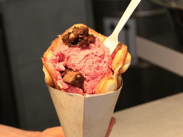 Um die Kunden bei Laune zu halten, lassen sich Eisdielen immer neue Kreationen einfallen. Inspiriert werden sie von Einflüssen aus der ganzen Welt. Der Black-Food-Trend beispielsweise stammt aus Japan: Dort begann alles, als das Bild eines schwarzen Hotdogs mitsamt schwarzer Wurst in den Sozialen Netzwerken um die Welt ging. Seitdem gibt es Burger, Pizza, Macarons und eben auch Eis in tiefschwarz.