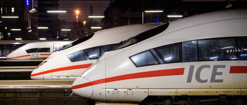 Züge vom Typ ICE stehen am Hauptbahnhof in München.