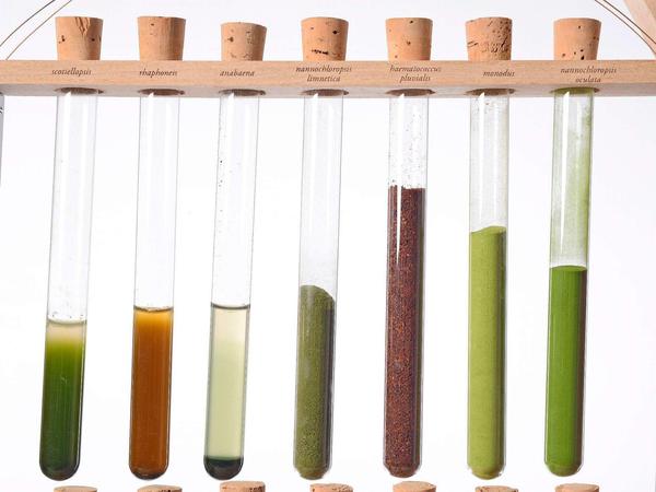 Das Pigment aus Algen ist ein Naturstoff, hat ein Eigenleben und reagiert auf die Art des Tragens. Bei der Entwicklung der Farben aus Algen entstanden Kooperationen beispielsweise mit der Schweizer Designerin Ylenia Gortana oder dem Berliner Schuhlabel Trippen. "Algaemy" nennt das Design-Duo dieses Projekt, eine Zusammensetzung aus den englischen Begriffen "Algae" und "Alchemy".