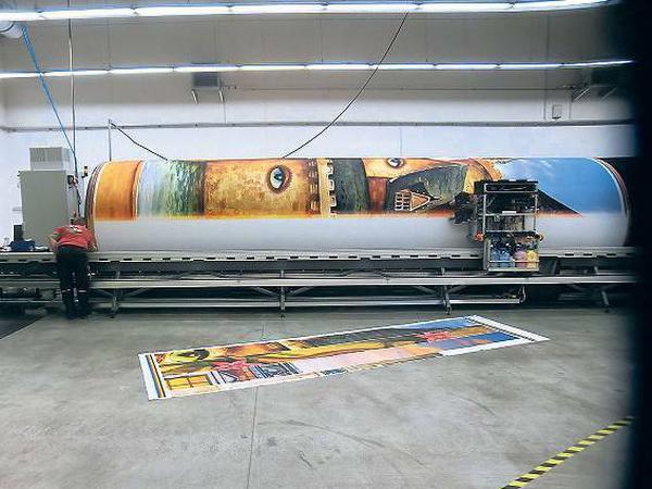 Diese Druckmaschine ist gigantisch. Die größte der Welt, um Stoff zu bedrucken. 12 mal 60 Meter schafft sie, höher und länger ist kein lieferbarer Stoffballen. Infinitus, „Der Unendliche“, hat die Firma Big Image Systems aus Babelsberg ihr Riesenbaby genannt. Auf Theaterbühnen und in Filmproduktionen rund um den Globus erzeugen die nahtlosen Bilder täuschend echte Hintergründe für perfekte Inszenierungen.