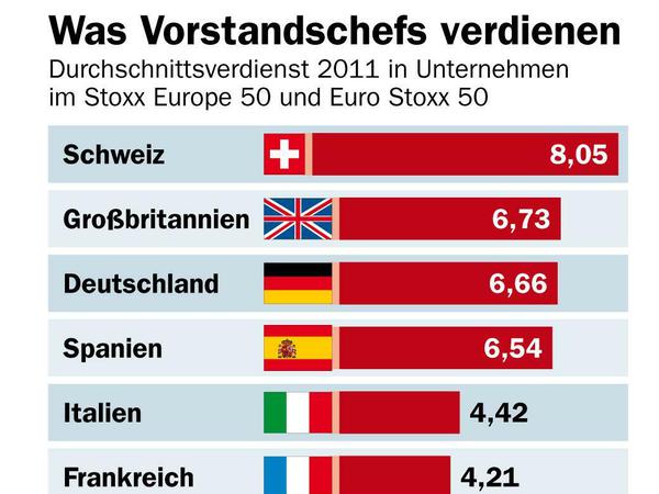 Die Regelung in Deutschland ist, obwohl 2009 verschärft, recht schwammig. Laut Aktiengesetz müssen die Gesamtbezüge „in einem angemessenen Verhältnis zu den Aufgaben und Leistungen“ eines Managers stehen. Aktionäre können auf einer Hauptversammlung zudem nur über das Vergütungssystem abstimmen, nicht aber über die absolute Höhe. Zuletzt hatten die Bezüge von VW-Chef Martin Winterkorn für Aufsehen gesorgt. Ursprünglich sollten sie für 2012 bei 20 Millionen Euro liegen, der Aufsichtsrat begrenzte sie auf 14,5 Millionen. Auch die Bezüge mehrerer Banker hatten für Streit gesorgt.
