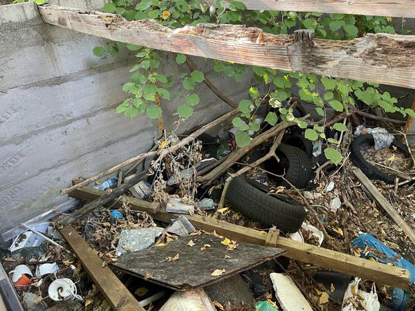 Wie der Tagesspiegel in dieser Woche erkunden konnte, zeigen sich neben viel Unrat, alten Autoreifen und aus den Asphaltbahnen wachsenden Bäumen, Bauzäunen und zugewucherten Wegen auch wieder Spuren menschlichen Lebens. Ein Gastank, ein Grill, ein Edelstahlrohr im Schornstein und Topfblumen signalisieren: Hier ist jemand, hier bleibt jemand. Wo vor und nach dem Mauerbau Kontrollpunktbeschäftigte und Lkw-Fahrer in der Raststätte zusammensaßen, macht es sich jemand gemütlich. In einem von Vandalismus schwer gezeichneten Gebäude wohnen jetzt nach jahrzehntelangem Leerstand Menschen, hilfsweise hinter preisgünstigen Holzfaserplatten, die Reste eingeschlagener Fensterscheiben verdecken.