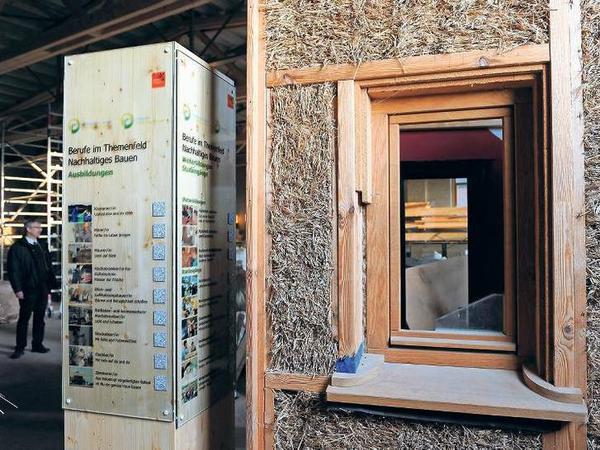Die Uferwerk Genossenschaft für ein „gemeinschaftliches und nachhaltiges Mehrgenerationenwohnen“ hat sich bei diesem Bau, der von der Berliner Planmarie Arge geplant wurde, für eine Rahmenkonstruktion aus Holzbohlen entschieden. „Sie hat den Vorteil, dass man die Ballen senkrecht einstellen kann“, erklärt Fuchs. Dann stehen auch die Halme senkrecht und die Dämmeigenschaften sind genauso gut, als wenn die Ballen liegen, obwohl die Mauer etwas dünner wird.
