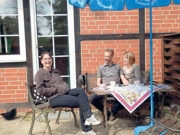 Ingo Klein macht die Reitschuhe zu und zieht die Hosenbeine zurecht. Dann greift er seinen Helm und die Handschuhe und geht los. Er hat sich für einen Ausritt angemeldet. Seine Frau Tina und die gemeinsame Freundin Gesine Drewes reiten erst später, sie bleiben noch etwas am kleinen Tisch auf der kleinen Terrasse sitzen. „Sommer, Sonne“, sagt Gesine Drewes und schließt beim Blick zum blauen Himmel die Augen, „das ist natürlich optimal.“ Das sechsjährige Kind der Kleins ist längst weg: Ponys putzen.