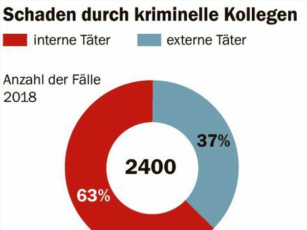 Was sich so einfach anhört, ist kein Einzelfall. Laut dem Gesamtverband der Deutschen Versicherer (GDV) sind die eigenen Mitarbeiter hinsichtlich Betrug und Unterschlagung das größere Risiko für Unternehmen als Diebe von außen. Der Verband hat 2400 Schadenfälle aus der Vertrauensschadenversicherung ausgewertet und kam zu dem Schluss: Knapp zwei Drittel der Fälle und rund 75 Prozent des Schadens ging auf das Konto krimineller Kollegen. Der Versicherungsschaden lag den Angaben zufolge im vergangenen Jahr insgesamt bei 225 Millionen Euro.