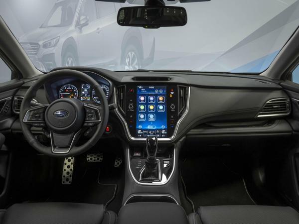 Als erstes Modell hat der neue Outback die vierte Infotainment-Generation bekommen: Sie definiert das Cockpit neu, denn Subaru verzichtet nun weitgehend auf Knöpfe und Tasten. So sind auch die Drehregler für die Klimabedienung entfallen – schade. Ein 11,6 Zoll großer Touchscreen fungiert als Bedienzentrale für alle wichtigen Funktionen – vom Infotainment über die Eyesight-Assistenzsysteme und Sitzheizung bis hin zur Klimatisierung und dem den höheren Ausstattungslinien vorbehaltenen Navigationssystem. Die sogenannten Shortcuts, die zu Telefonie, Navigation und den verschiedenen Apps führen, lassen sich beliebig anpassen und verschieben. Das Infotainment-System bietet Digitalradio DAB+, zwei USB-Anschlüsse vorne und eine Smartphone-Einbindung per Apple CarPlay und Android Auto. In der Topausstattung kommt ein Premium-Soundsystem von Harman/Kardon mit zehn statt sechs Lautsprechern inklusive Subwoofer zum Einsatz.