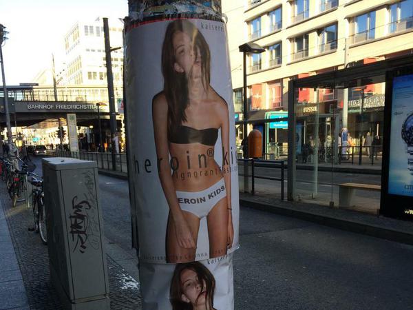 Dieses Werbefoto einer jungen Frau, eher eines Mädchens, augenscheinlich nicht mehr als 40 Kilo leicht und mit einem Blick, als habe man es gerade aus einer 48-Stunden-Technoparty (oder aus dem Tiefschlaf) gezerrt: Es verschafft einem Kunstunternehmerpaar aus der oberbayrischen Provinz, tätig im Berliner Wedding, nun bundesweite Aufmerksamkeit. Der Deutsche Werberat sprach am Donnerstag öffentlich eine „Rüge“ gegen das in Berlin eingetragene Unternehmen Heroin Kids für besagtes Plakatmotiv aus. Damit adelte die Institution, die seit 1972 im Auftrag der Werbewirtschaft auf die Einhaltung der selbst gesetzten Regeln achtet, ein Projekt, das womöglich erst noch dabei ist, ein kommerziell erfolgreiches Geschäft zu werden.