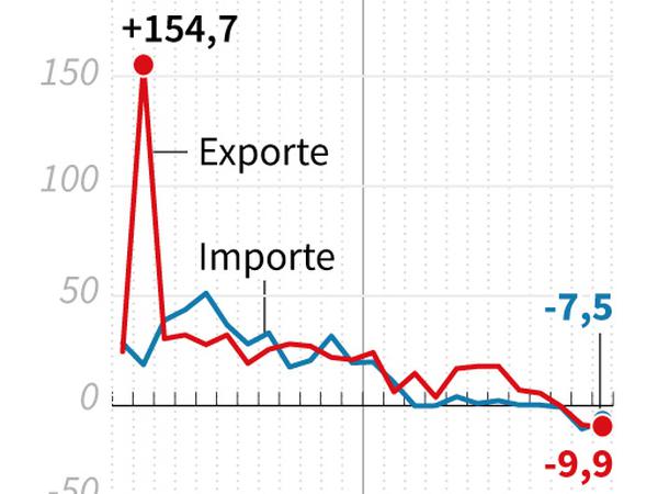 Bereits im November waren die Exporte um 8,7 Prozent im Jahresvergleich gesunken. Über das Jahr 2022 gesehen stieg das Ausfuhrvolumen zwar um sieben Prozent an. Im Vorjahr lag das Exportwachstum mit 29,9 Prozent jedoch deutlich höher.