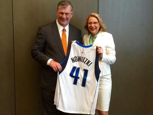 Als Gastgeschenk überreichte Rawlings Yzer ein persönlich signiertes Trikot des "wohl beliebtesten Prominenten aus Dallas überhaupt", Basketball-Star Dirk Nowitzki, der die Dallas Mavericks zu Ruhm führte. Yzer freute sich sichtlich - allerdings nur kurz. Derartige Geschenke müssen Senatoren immer artig abgeben.