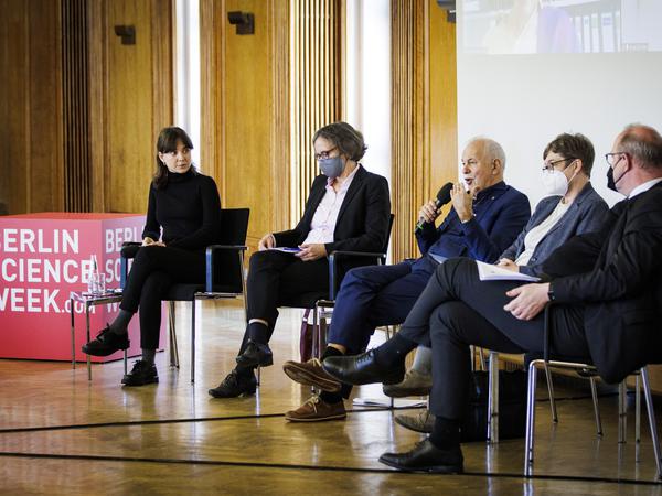 Dabei müssten sie auch aus ihrer Bubble heraustreten und mit den Bürger:innen das Gespräch aufnehmen, wurde in der Vorstellung des Programms immer wieder betont, an der neben der Wissenschaftssenatorin auch Science Week-Koordinator Jürgen Mlynek, die HU-Präsidentin Julia von Blumenthal, Akademie-Präsident Christoph Markschies und weitere Vertreterinnen von Partnerinstitutionen teilnahmen.
