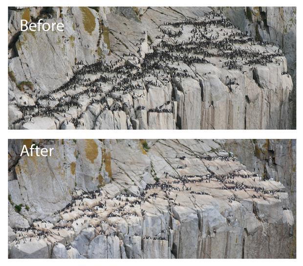 In den 13 untersuchten Trottellummen-Kolonien schrumpften die Populationen der Studie zufolge um 52 bis 78 Prozent. Das entspreche dem Verlust von vier Millionen Vögeln in weniger als zwei Jahren.