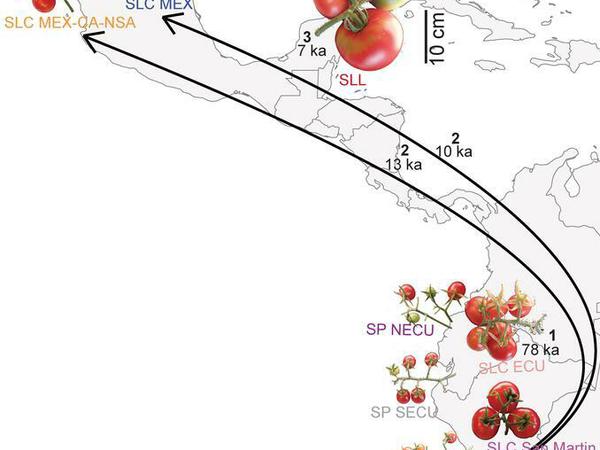 «Die Geschichte der Domestizierung von Tomaten wird im Allgemeinen als ein zweistufiger Prozess dargestellt, bei dem die Fruchtgröße von Blaubeere (SP) zu Kirsche (SLC) und dann zu den weltweit konsumierten sehr großfruchtigen gewöhnlichen Tomaten zunimmt», schreiben die Wissenschaftler. Ihre Analysen bestätigen, dass die Wildform SP aus Südamerika stammt. Doch dass SLC schon eine erste Zuchtvariante der Wildform SP war, schließen sie aus.
