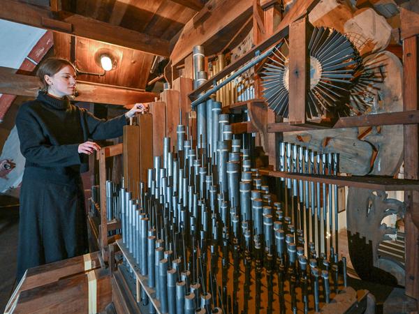 Barry Jordan hat ein ganz anderes und trotzdem ähnliches Problem. Er ist Organist im Magdeburger Dom – und Herr über 6139 Pfeifen der Domorgel. Und auch die verstimmen sich gegenläufig: „Die Labialen sinken ab, die Zungenstimmen nicht“, so Jordan. Die Labialen oder Lippenpfeifen erzeugen den Ton, indem sie den Luftstrom brechen. Die Lingualen oder Zungenpfeifen erzeugen ihn durch eine schwingenden Metallzunge. Also muss Jordan in jeweils viereinhalbstündiger Arbeit die 20 Labial-Register mit jeweils 61 Pfeifen nachstimmen.