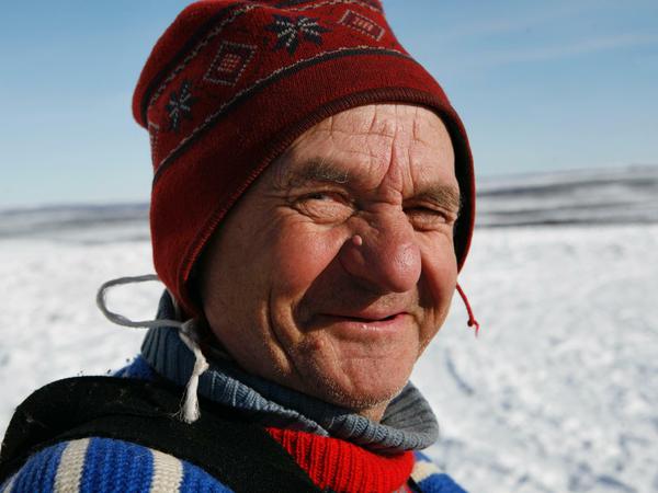 Am siebten Tag dann endlich Erleichterung. Langsam, aber sicher geht’s bergab. Die ersten vereinzelten Bäumchen schlagen sich wacker im Schnee. Plötzlich brechen die beiden Huskys seitlich aus und jagen ein paar schneeweiße Vögel in die Flucht. Wir hatten sie gar nicht gesehen. Zurück im Leben. Die ersten Wildtiere nach einer Woche. In der Ferne steigt Rauch aus einem uralten Wohnwagen. Piera Johvna Utsi freut sich über den unerwarteten Besuch. 1200 Rentiere besitzt der 71-jährige Same. Irgendwo hinter den sanften Hügeln sei seine Herde. Zufüttern müsse er im Winter und die Tiere immer wieder zusammentreiben.