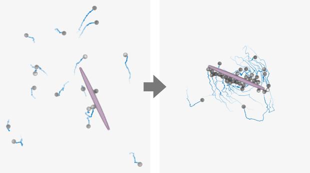 Durch die Anwendung dieses Prinzips brachten die Forscher den Roboterschwarm dazu, Stäbe zu drehen und zu schieben. Auch Hindernisse wie eine Wand oder Säulenstümpfe, an denen der Stab vorbeimanövriert werden musste, hielten die Mikroroboter nicht vom Ziel ab.