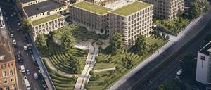 In nur einem Jahr sind zwei Bürobauten an der früheren Bötzowbrauerei entstanden. Ein Fitnessstudio und einen Biergarten soll es hier künftig geben – und eventuell ein Wohngebäude.