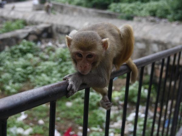 Strahlend geht er voran und dreht sich unaufhörlich zu uns um: "Monkey, Monkey", ruft er und zeigt auf die wilden Affen, die hier auf den Tempelgelände zu hunderten leben. Es sind Makaken, eine weit verbreitete Art in Indien. Der Alte zeigt auf die Türme, die an den Berghängen liegen: "Shiva, Brahma, Vishnu, Hanuman – Temple", sagt er und damit haben sich seine Englischkenntnisse bereits erschöpft. Dafür ist seine gute Laune umso ansteckender. Mit Erdnüssen wollen wir die Affen anlocken, um sie ganz aus der Nähe zu sehen. Doch die Schlauen haben gleich erkannt, dass die Tüte mit den Nüssen aus Zeitungspapier ist: Ein gezielter Griff und die Beute kullert auf den Boden. Sogleich stürzt sich die Meute darauf und ich stehe angeschmiert da.