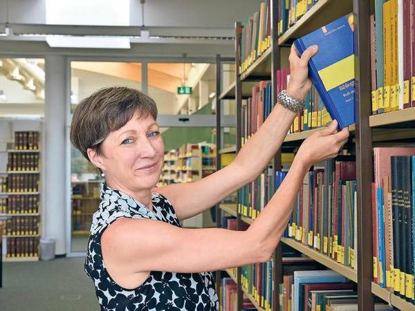 Die Diplombibliothekarin ist am Informationsschalter der Universitätsbibliothek bei der Literatursuche behilflich und bietet außerdem Seminare zu Recherche und Literaturverwaltung an. „Sich gleich zu Beginn des Studiums mit der Bibliothek auseinanderzusetzen, wie sie aufgebaut ist, wie die Ausleihe funktioniert, das zahlt sich für das ganze Studium aus – bis zur Abschlussarbeit“, sagt Simone Schütte.